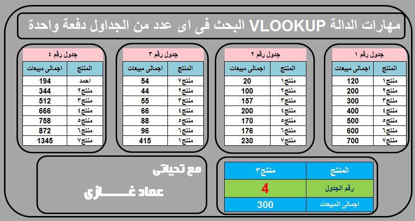اكسل مهارات البحث بالدالة Vlookup Choose البحث فى اى عدد من الجداول How To Use Vlookup With Choose Function