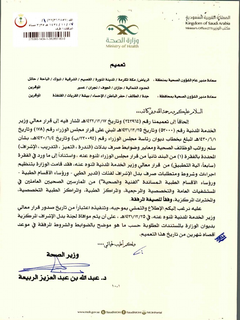 الصحة تعتزم صرف بدل الإشراف شهري ا صحيفة المواطن الإلكترونية